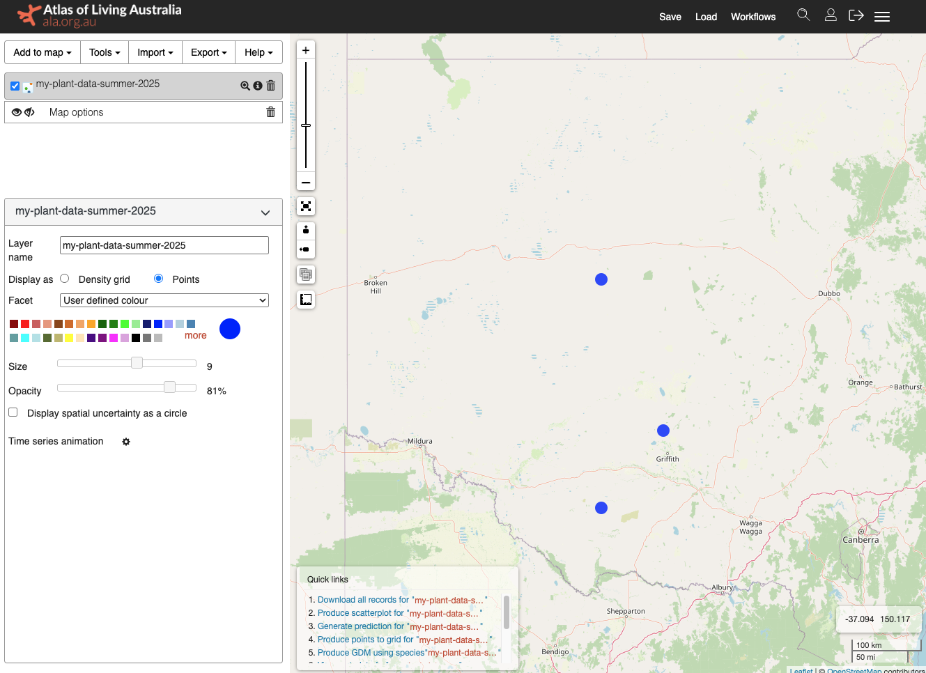 Note: If you encounter an error message, double-check the content, column names and formatting of your csv file against the recommendations in Step 1. If you need assistance, please reach out to support@ala.org.au.